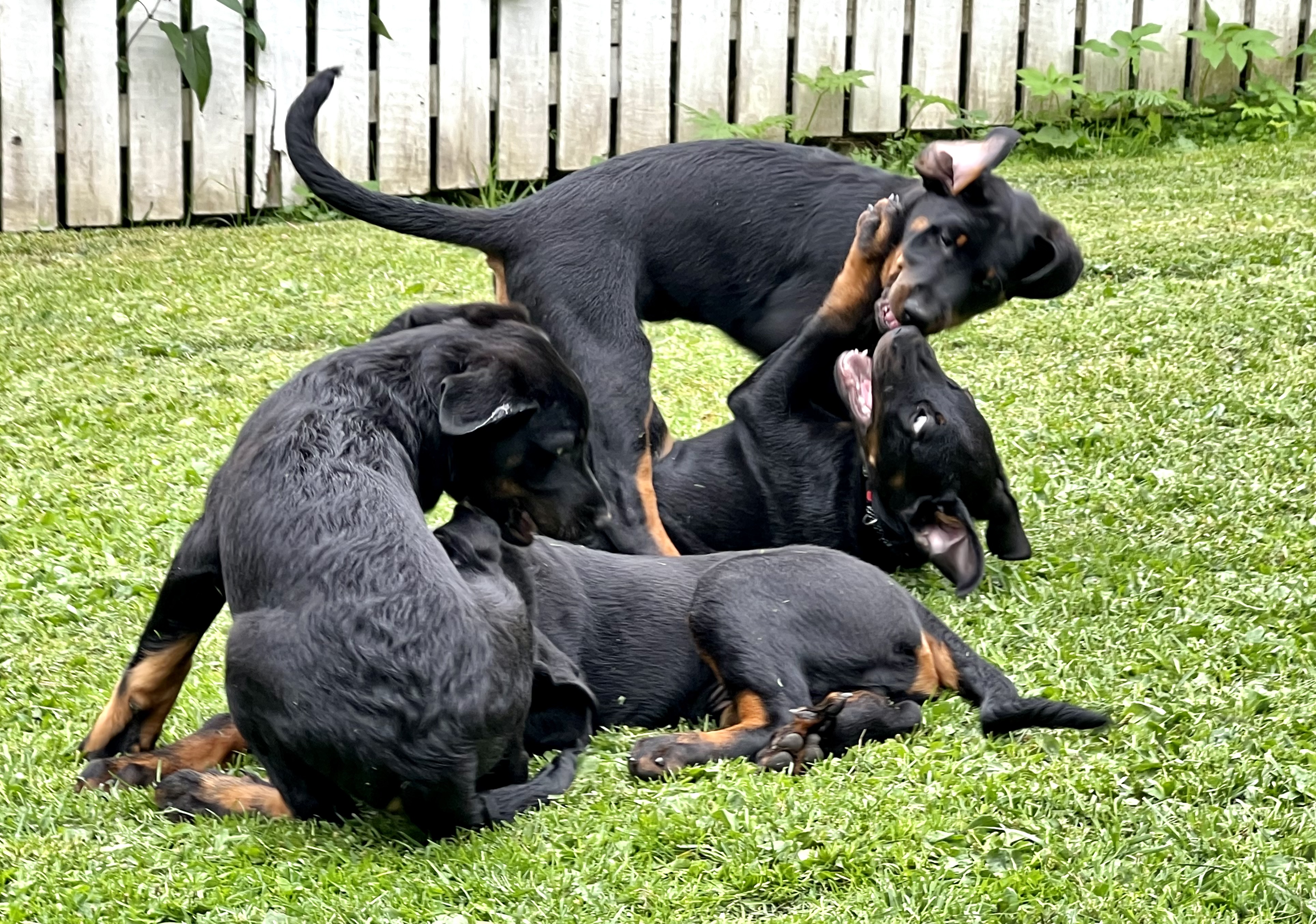 Kun Navin pennut lähtivät koteihinsa kahdeksanviikkoisina ennen juhannusta, oli kasvattajien takki tyhjä. Kymmenen vilkasta pentua on täysipäiväinen työ, jota teimme välillä vuorotellen ja yhdessä – päivätöiden lisäksi. Lisäksi oli tärkeää sosiaalistaa pentuja heti neljännen viikon jälkeen, joten meillä kävi jatkuva, päivittäinen vieraiden virta kuukauden ajan. Aika oli erittäin odotettua, antoisaa ja hauskaa, mutta myönnetään että tällä kertaa ison pentuekoon takia myös melko raskasta. Kaikki pennelit pääsivät todella mukaviin ja aktiivisiin koteihin, ja tästä olemme todella onnellisia. Pennut ovat olleet terveitä, vilkkaita ja erittäin avoimia. Jokunen jo harrastaa useitakin lajeja, ja lähes kaikki ovat käyneet vähintäänkin arkitottelevaisuus- tms. kursseilla.