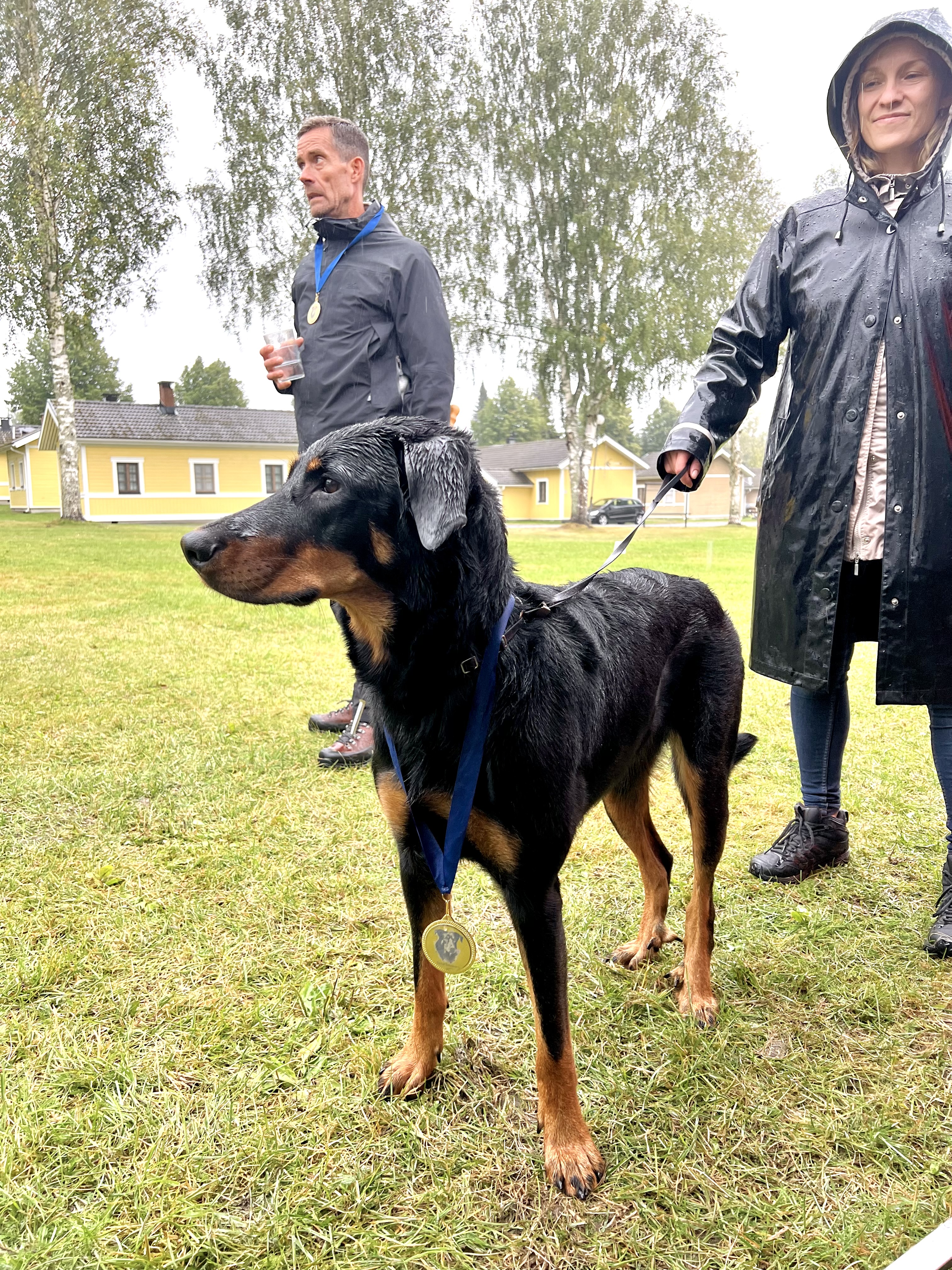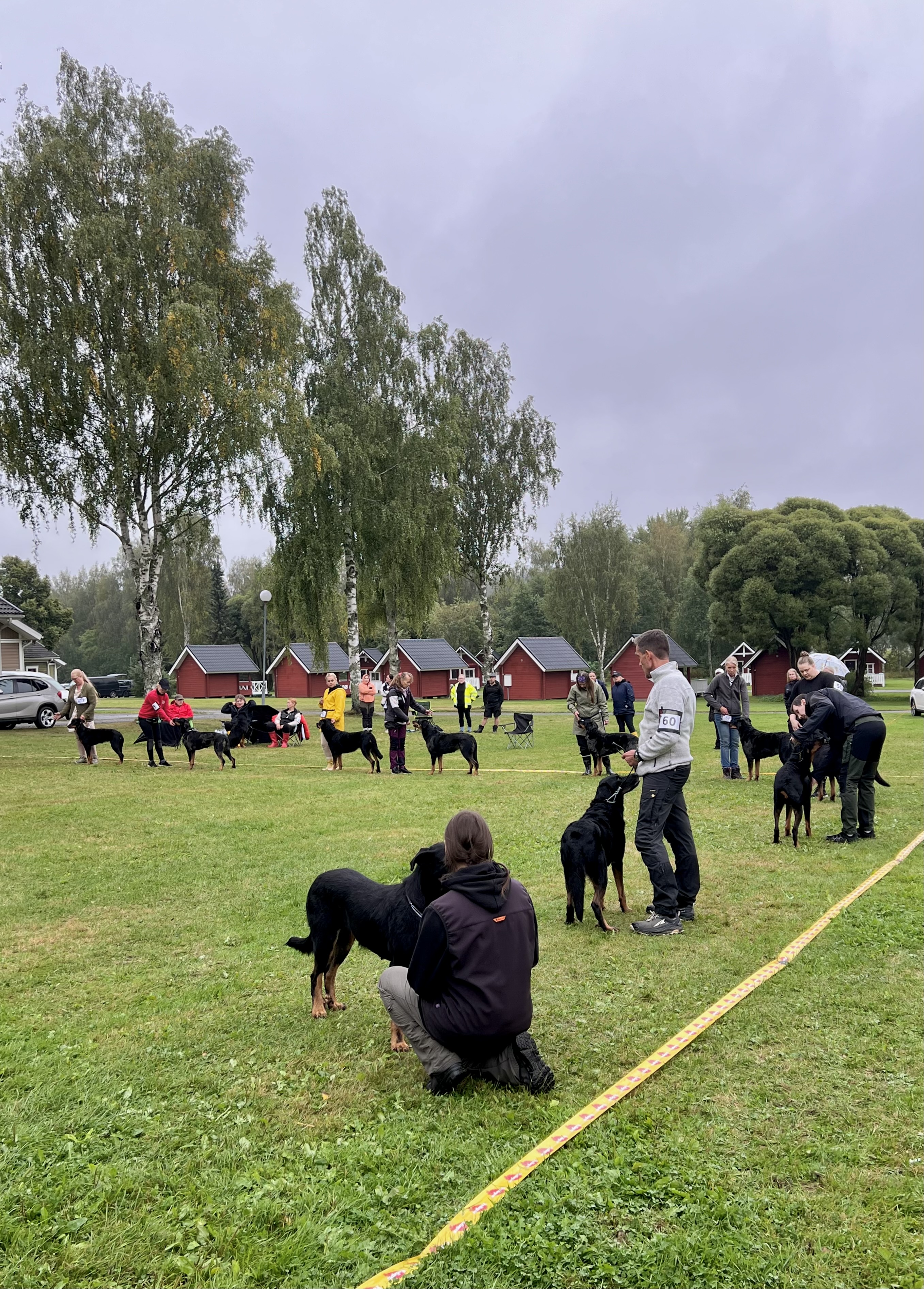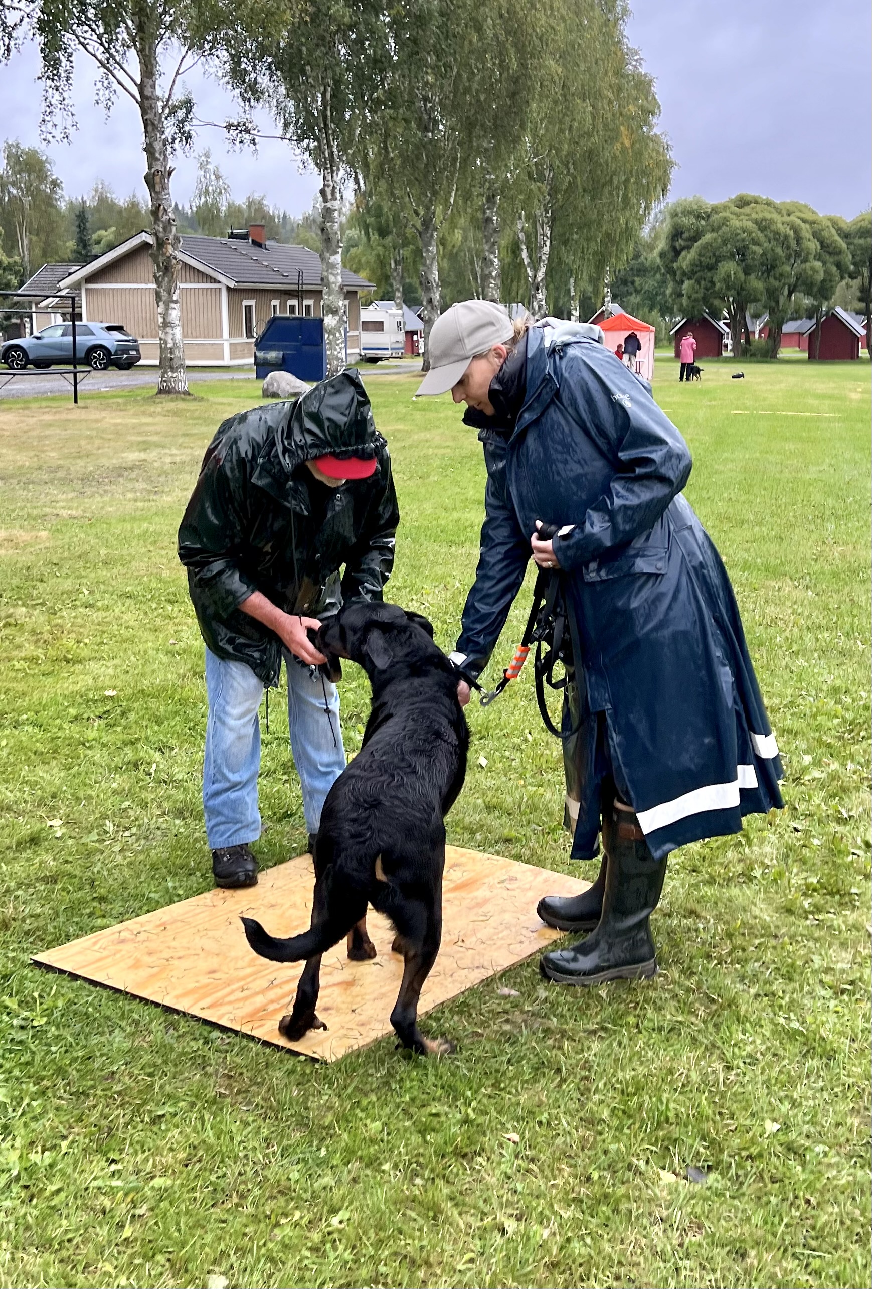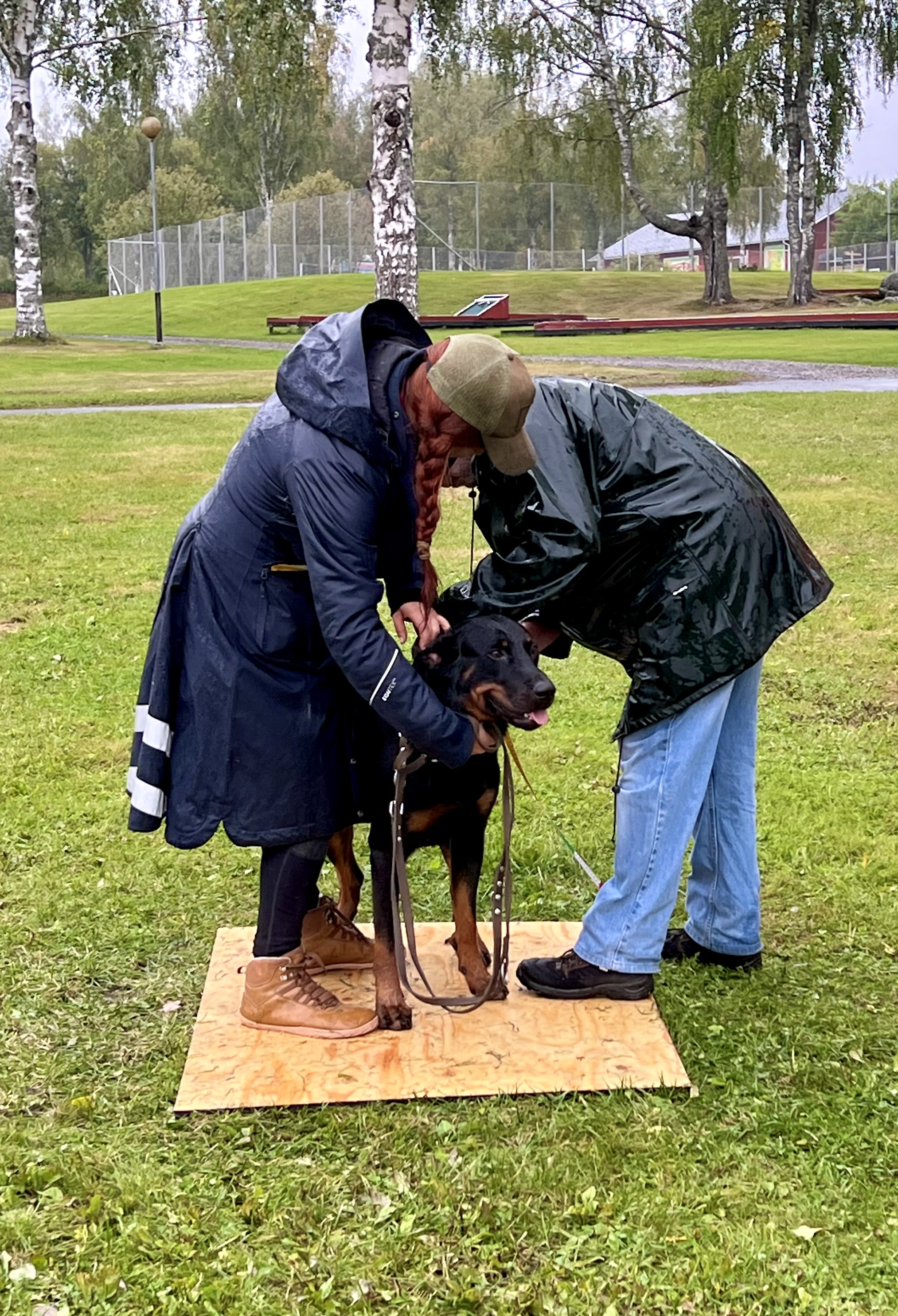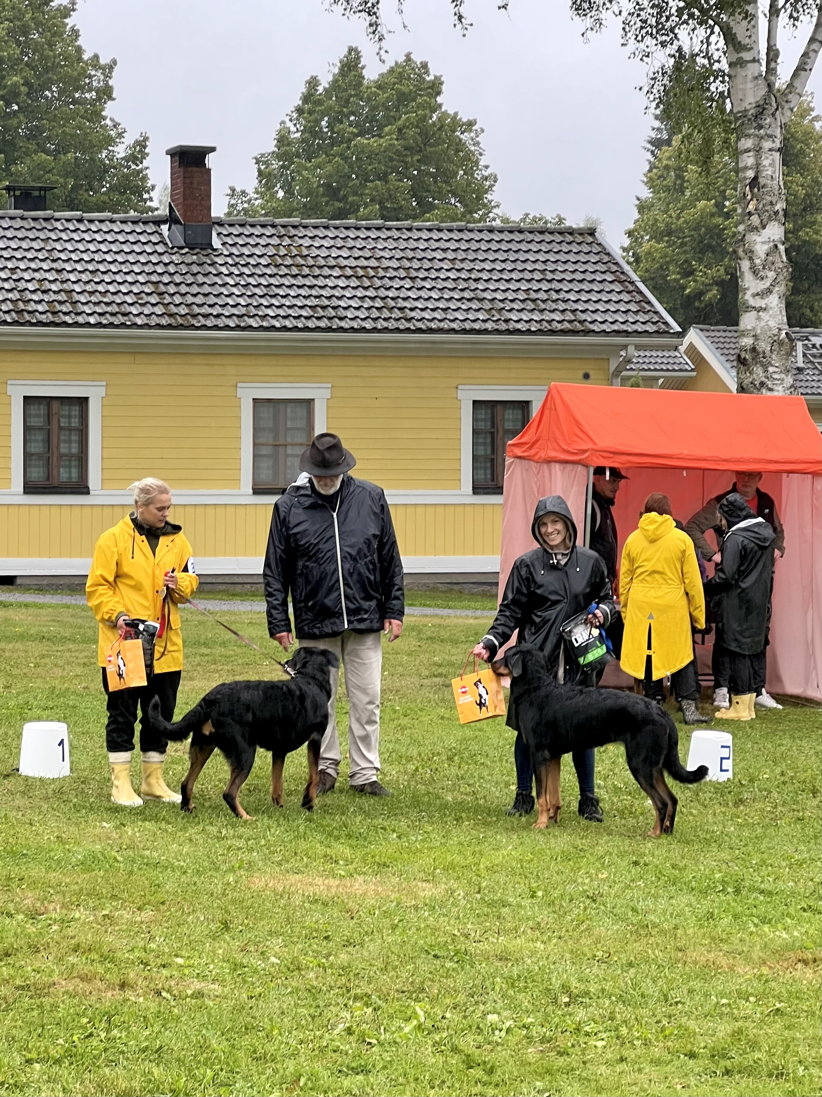 Ensimmäisenä päivänä seurasimme silmä tarkkana jalostustarkastuksen luonnetestausta, jossa meidän kasvatit pärjäsivätkin hienosti. Päivä oli nuorille koirille tosi väsyttävä ja pitkä rankkasateessa, mutta hyvin ne jaksoivat. Ainoastaan Tessan luonneosiossa, joka tehtiin vasta pitkän päivän loppupuolella, näkyi jo koiran väsähtäminen. Myös Vali turhautui päivän päätteeksi kasvattajaryhmän esiintymiseen, joten ensi kerralla osaamme varautua koirien parempaan levontarpeeseen suoritusten väleissä. Saimme olla todella ylpeitä kaikkien tuloksista ja omistajista, jotka jaksoivat tulla mukaan. Päivän kruunasi Striderin ja Ziran hienot sijoittumiset kilpailuluokassa, sekä kasvattajaluokan 2. palkinto.