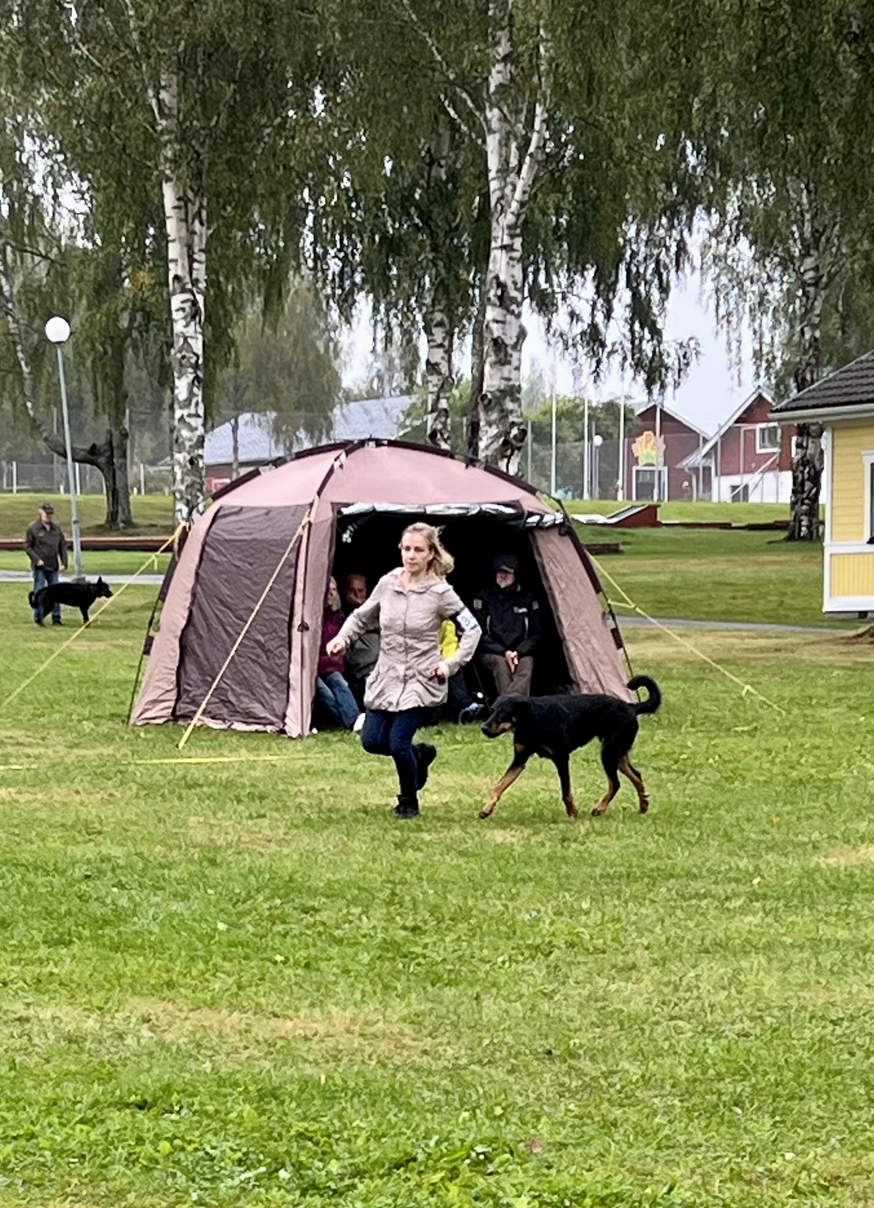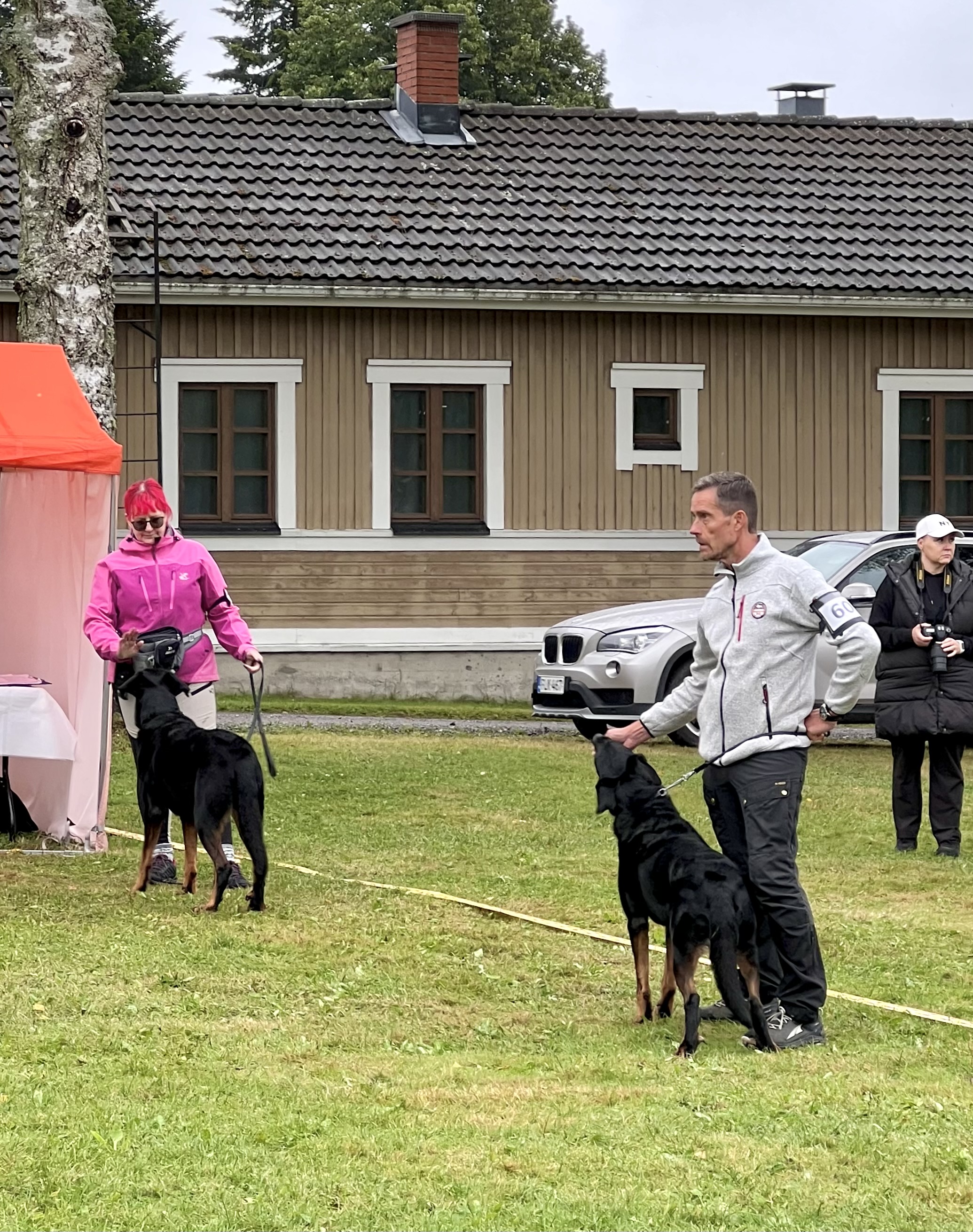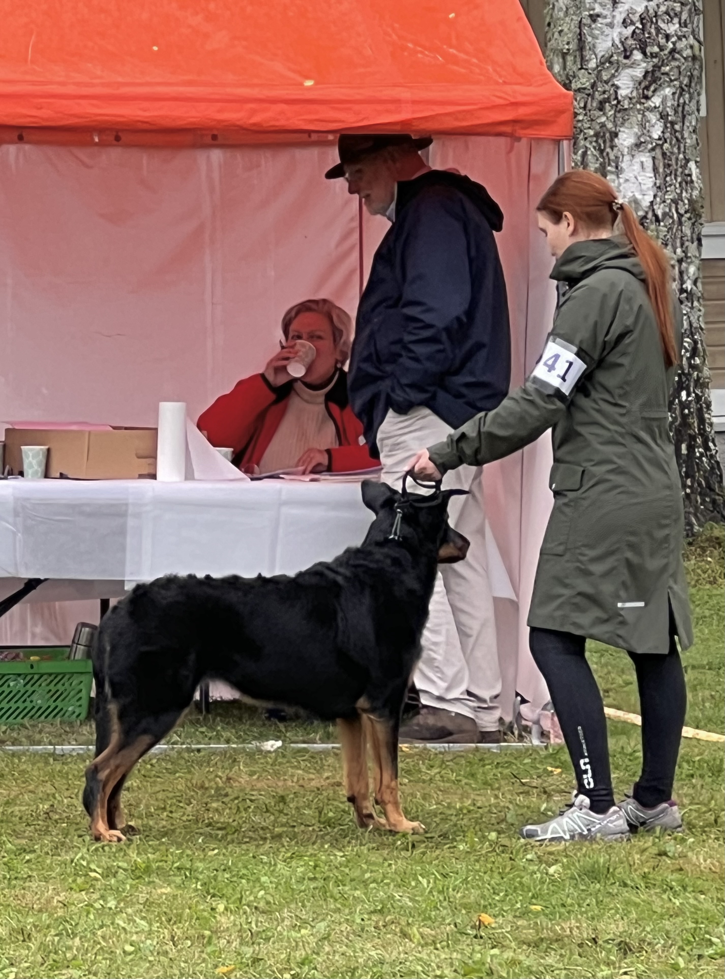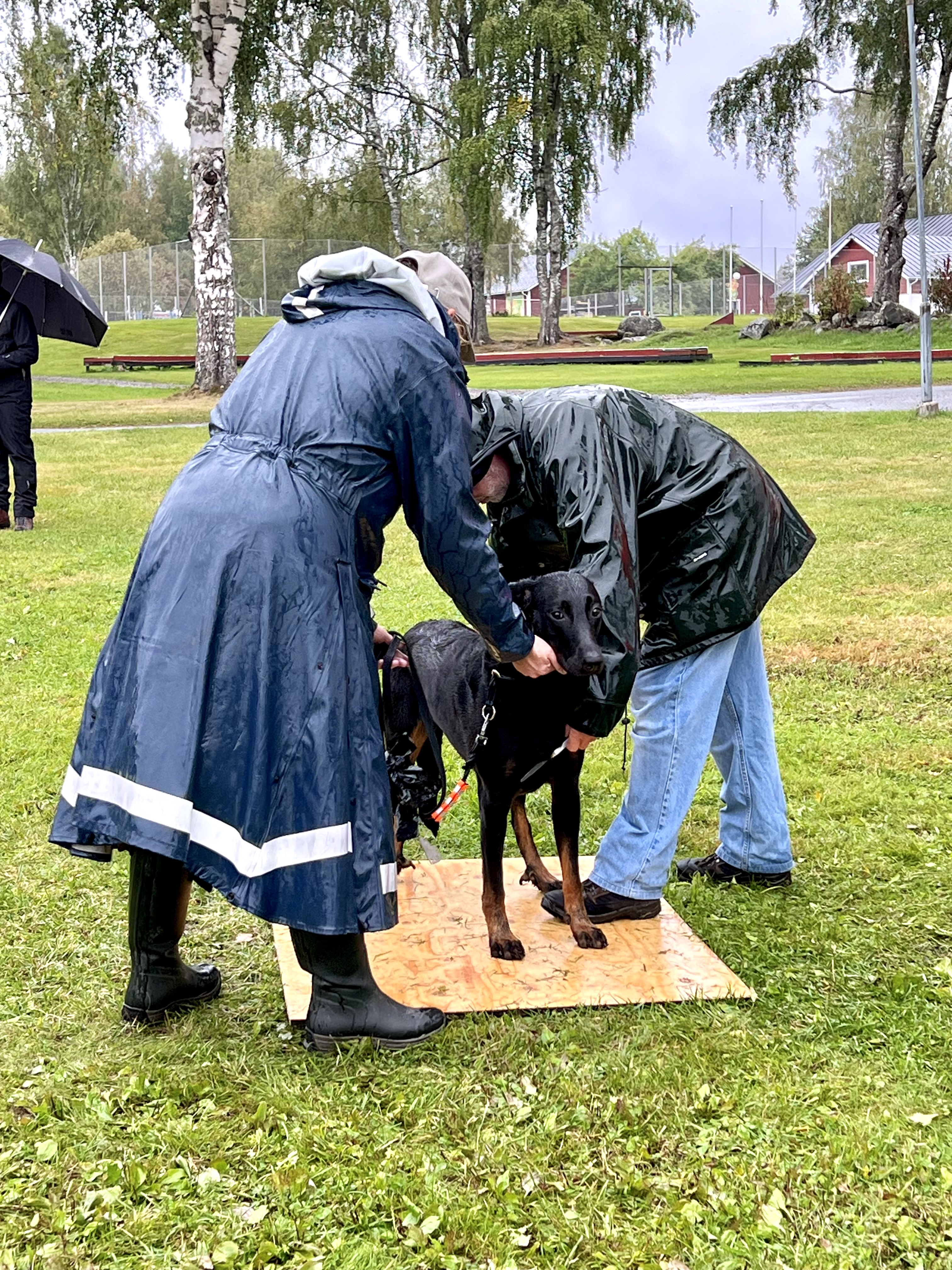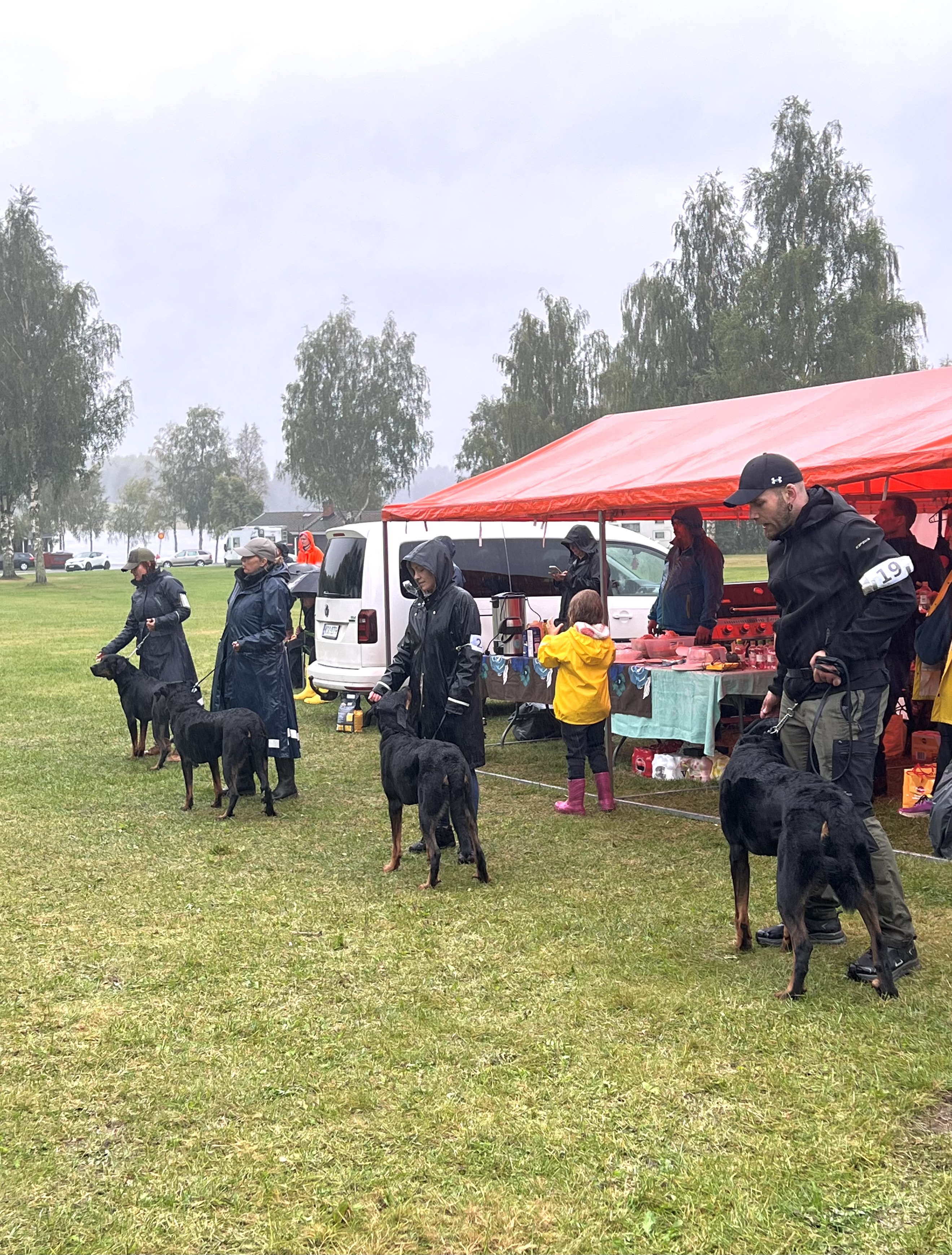 Ensimmäisenä päivänä seurasimme silmä tarkkana jalostustarkastuksen luonnetestausta, jossa meidän kasvatit pärjäsivätkin hienosti. Päivä oli nuorille koirille tosi väsyttävä ja pitkä rankkasateessa, mutta hyvin ne jaksoivat. Ainoastaan Tessan luonneosiossa, joka tehtiin vasta pitkän päivän loppupuolella, näkyi jo koiran väsähtäminen. Myös Vali turhautui päivän päätteeksi kasvattajaryhmän esiintymiseen, joten ensi kerralla osaamme varautua koirien parempaan levontarpeeseen suoritusten väleissä. Saimme olla todella ylpeitä kaikkien tuloksista ja omistajista, jotka jaksoivat tulla mukaan. Päivän kruunasi Striderin ja Ziran hienot sijoittumiset kilpailuluokassa, sekä kasvattajaluokan 2. palkinto.