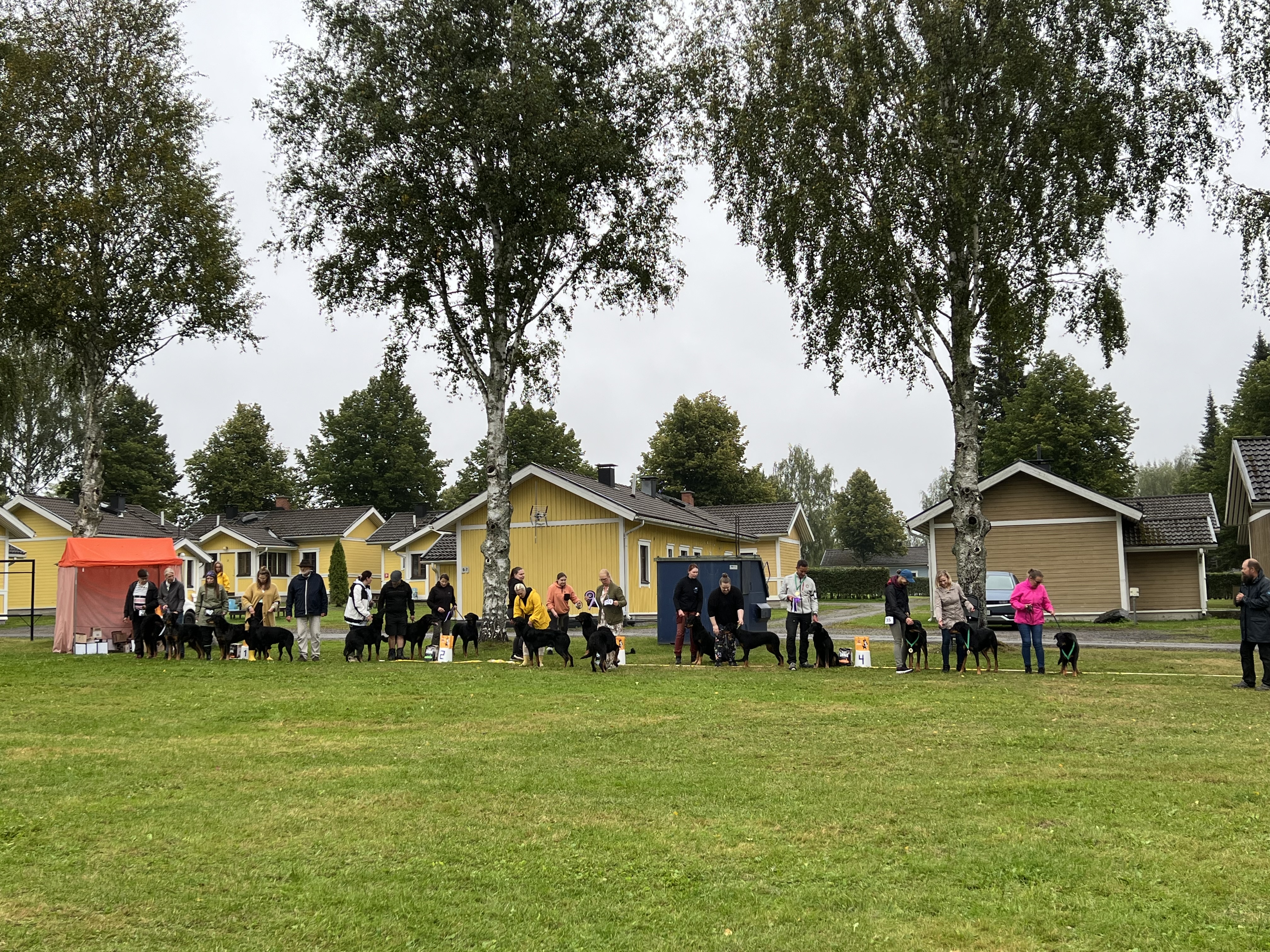 Lähdimme Mikkeliin viettämään kivaa beussiviikonloppua ilman erityisiä odotuksia. Viime hetkillä saimme houkuteltua mukaan kasvattejamme kolmesta eri pentueesta: kaksi veteraania (N-pentue), kolme avoimen luokan (U-pentue) ja kaksi nuorten luokan koiraa (V-pentue). Myös Alisa tuli mukaan Hannelen kanssa. Viikonloppu oli todella onnistunut, rankasta vesisateesta huolimatta. Kerrankin oli kunnolla aikaa rupatella sekä omien ja tuttujen, että uusien beussi-ihmisten kanssa. Oli myös arvokasta saada arvostelut rodun kotimaisilta erikoistuomareilta ja kuulla heidän näkemyksiään Suomen beussien tasosta tuomari-illallisen aikana. Onneksi koukkasimme menomatkalla Lahdessa Peten koiratarvikkeeseen hakemaan ison näyttelyteltan, joka olikin suosittu kohtaamispaikka molempina päivinä.